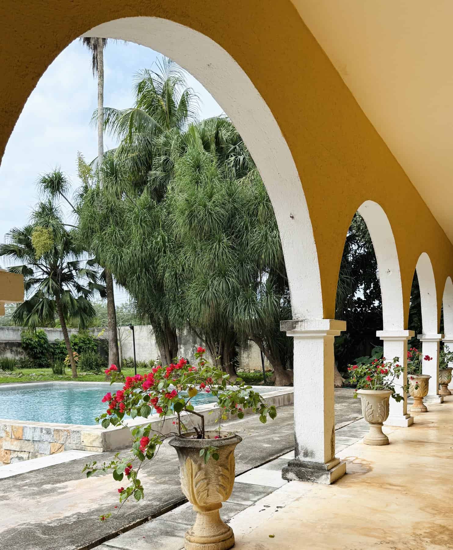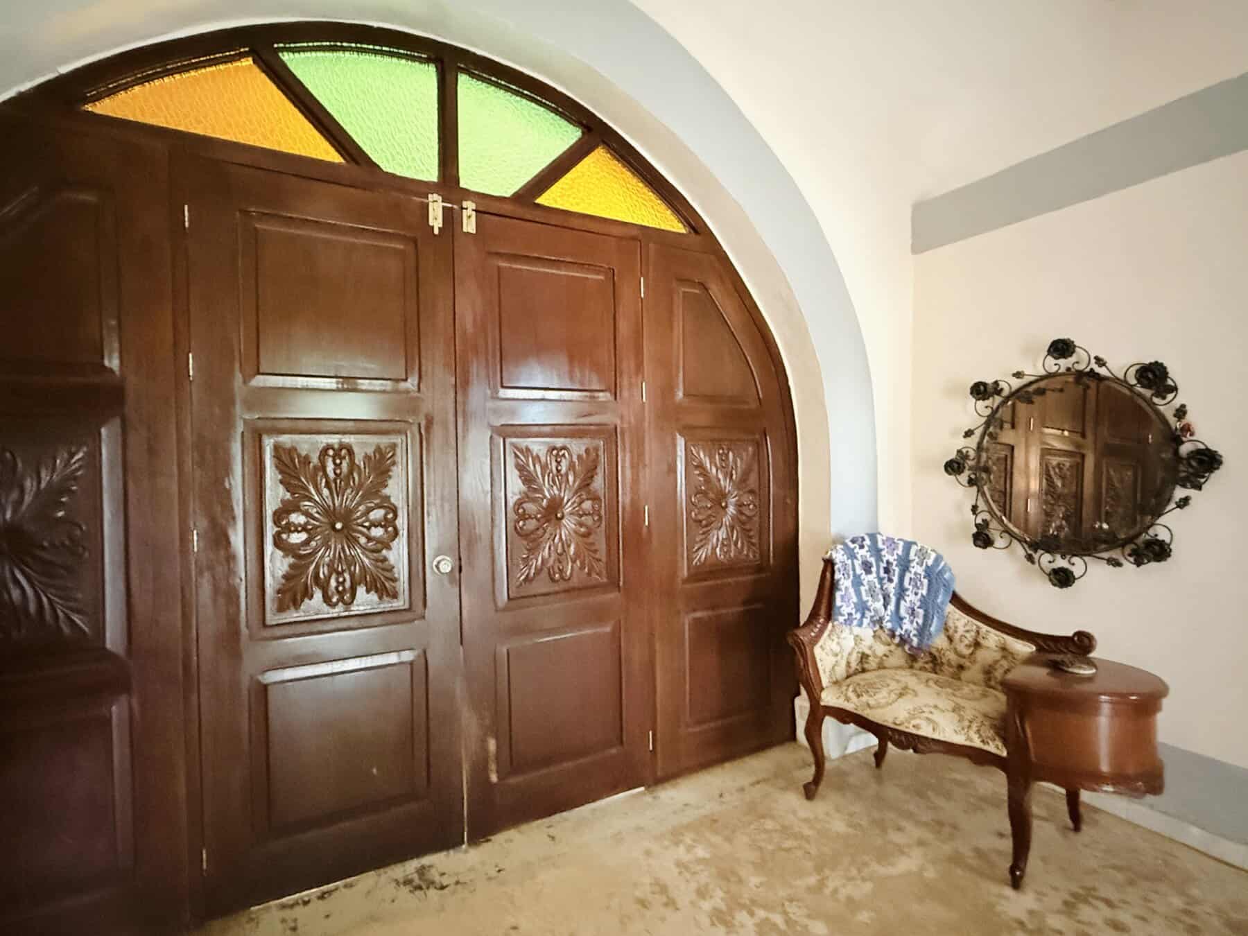 Outdoors, the mood is serene — a large swimming pool and shaded terrace invite long afternoons in the sun, and the arched corridor offers quiet reflection surrounded by tropical breezes. The original historic structures, carefully preserved, bring a sense of romance and authenticity few properties can match.