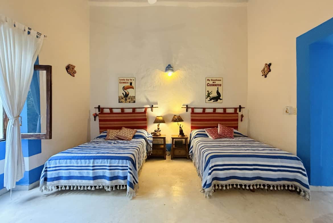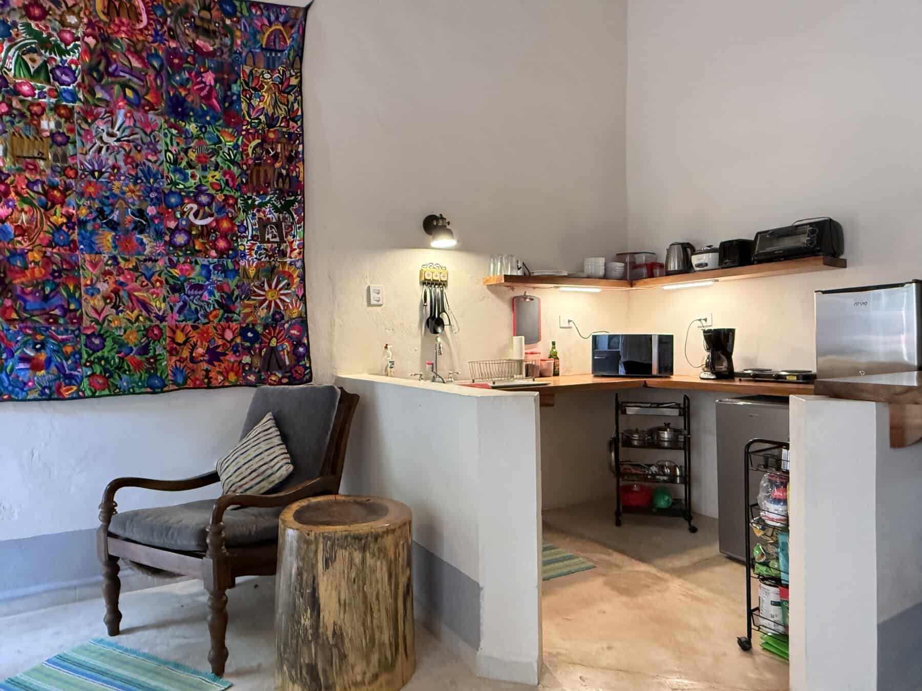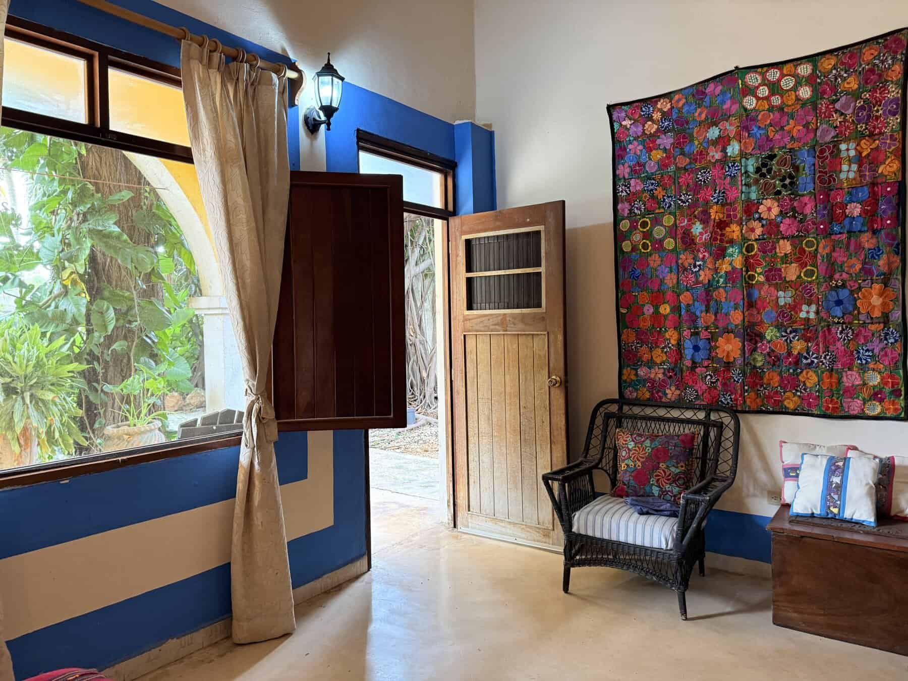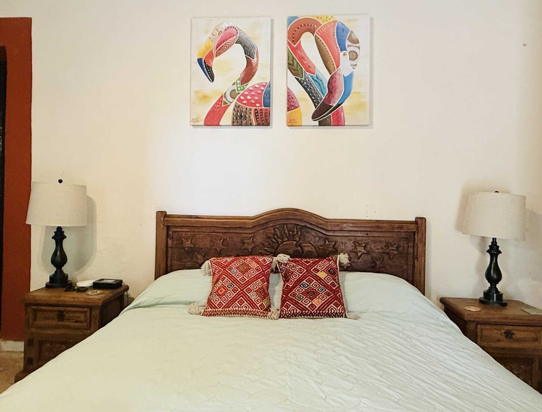 Five spacious bedrooms with bathrooms, including an independent suite with a private patio, provide space and privacy for family or guests. Colonial-style living and dining areas showcase warm textures and handcrafted finishes, while the traditional Mexican kitchen adds colour and character to daily life.